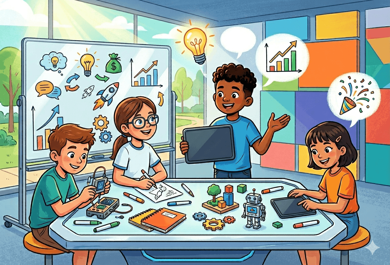 Copiii descoperă lumea antreprenoriatului! Învață cum să transforme ideile în proiecte, să planifice, să colaboreze și să le prezinte cu încredere, dezvoltând creativitatea și spiritul de inițiativă.